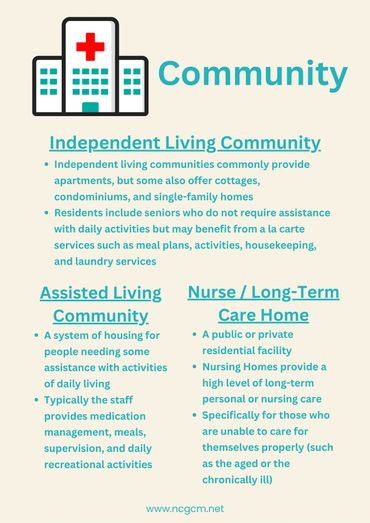 We recognize that choosing the right living arrangement has a significant impact on comfort, safety, and overall well-being. Our goal is to help identify the most appropriate and least restrictive option—balancing both financial considerations and lifestyle needs. We work closely with our clients to navigate the full range of senior living options, including independent living, assisted living, memory care, and skilled nursing facilities. With personalized guidance and compassionate support, we aim to reduce the stress of this important decision and ensure that each individual is placed in a setting that promotes dignity, peace of mind, and quality of life.